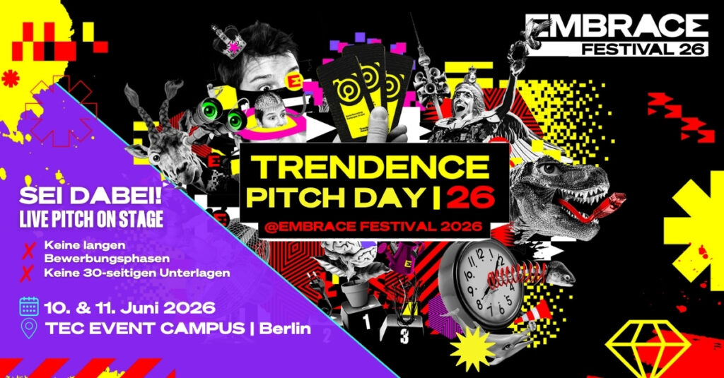 Der Trendence Award bleibt bestehen und findet im Herbst 2026 statt. Der Trendence Pitch Day powered by EMBRACE ist dabei die Vorauswahl als Live-Pitch auf dem EMBRACE Festival.